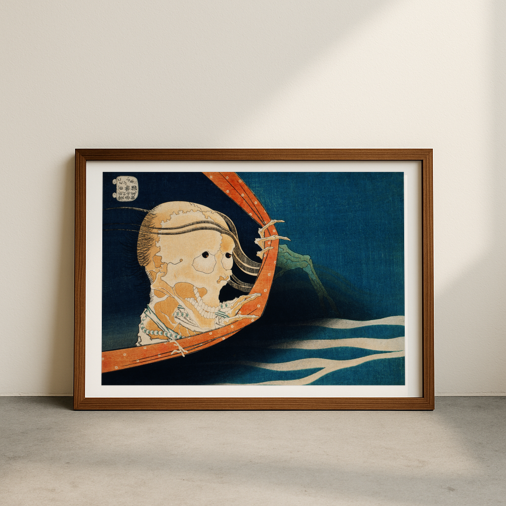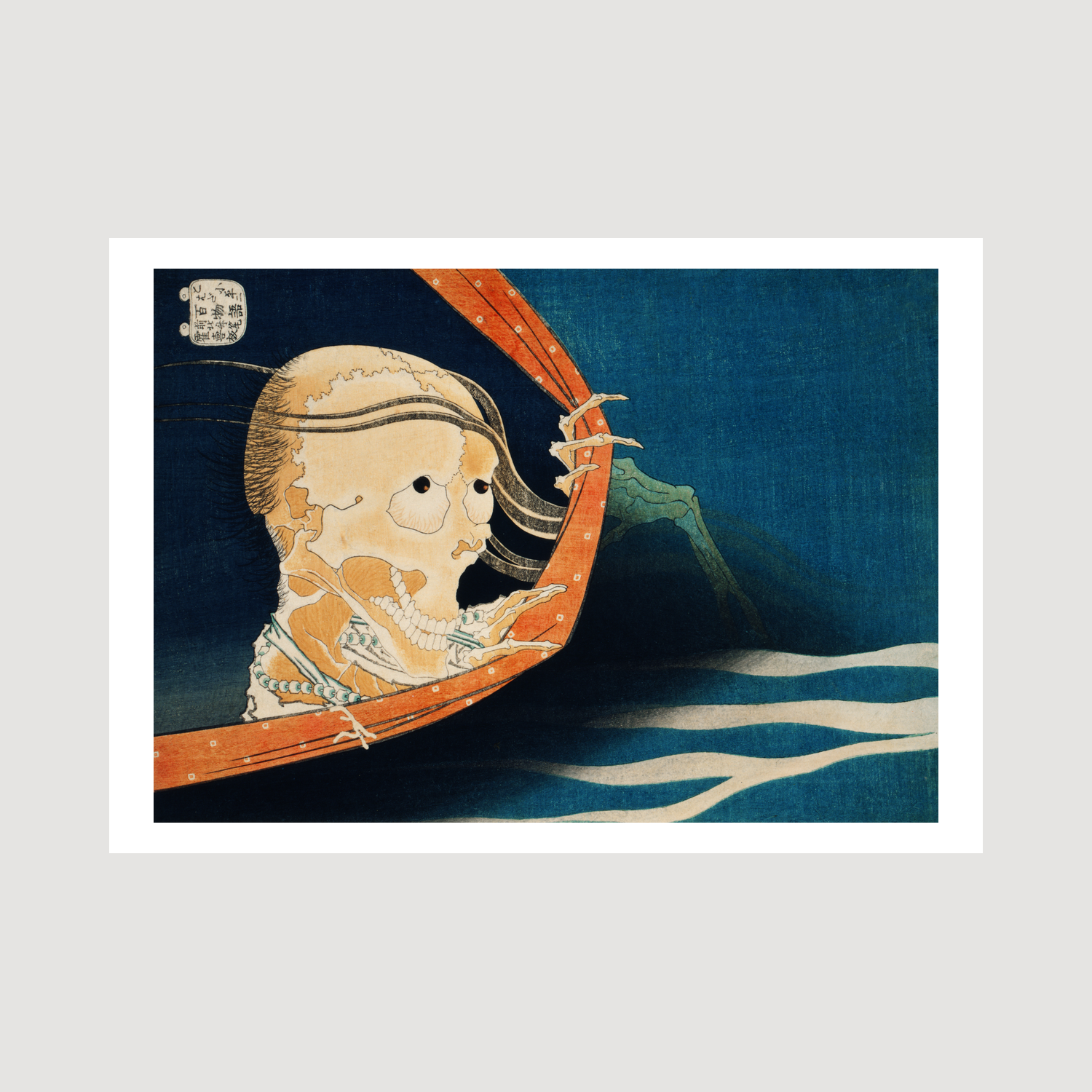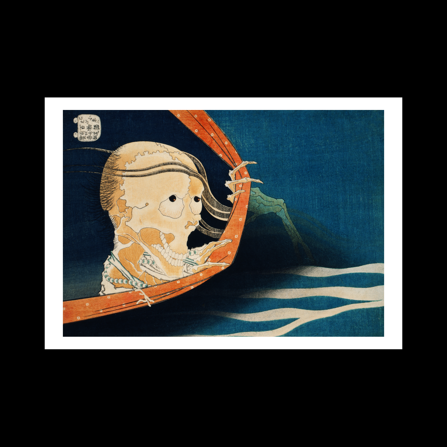 The technical precision required for this woodblock print is particularly evident in the ghost's semi-transparent appearance, achieved through careful carving and multiple printing stages. This piece exemplifies how Hokusai could transform traditional Japanese ghost story elements into visually striking artwork that still captivates viewers centuries later.