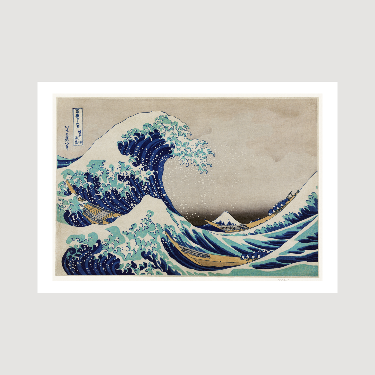 The print merges traditional Japanese techniques with modern influences, depicting the everyday courage of Japanese fishermen against the raw power of the sea. Hokusai's attention to detail is evident in the boats' occupants' determined poses and the wave's intricate foam patterns, creating a sense of suspended motion that continues to captivate viewers nearly two centuries later.