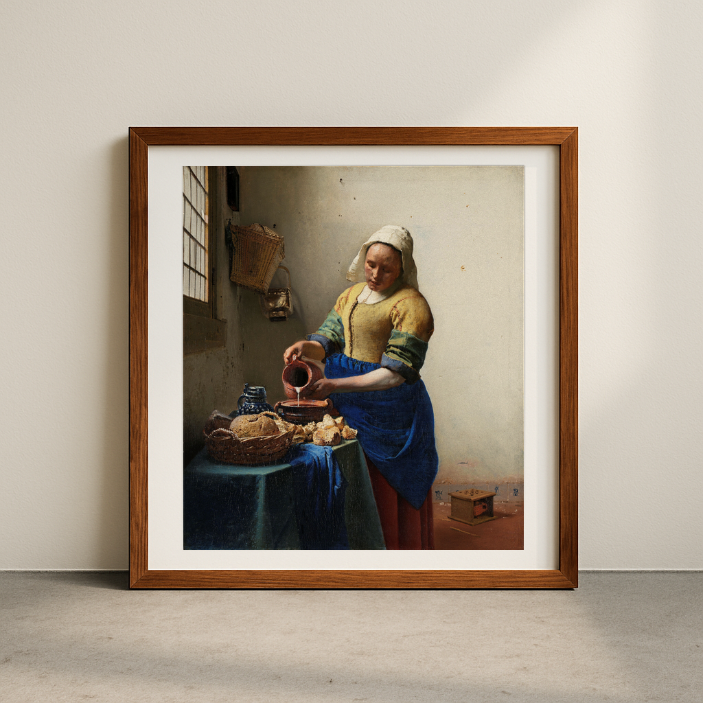 Painted during the 1650s, when the Dutch Republic was experiencing unprecedented prosperity, this work reflects the period's celebration of domestic life and labour. Vermeer chose to portray the maid with dignity and purpose, rather than as a comedic or moralistic figure common in contemporary Dutch art. The painting's composition creates a sense of suspended time, inviting viewers to contemplate the beauty in ordinary moments. This handling of light and subject matter influenced generations of artists, from the Impressionists to modern-day photographers.