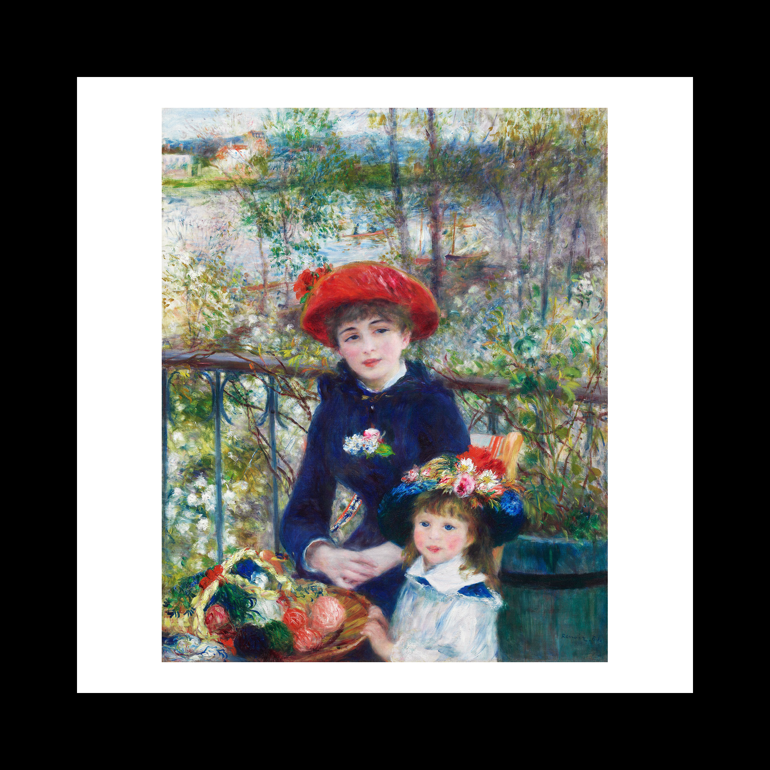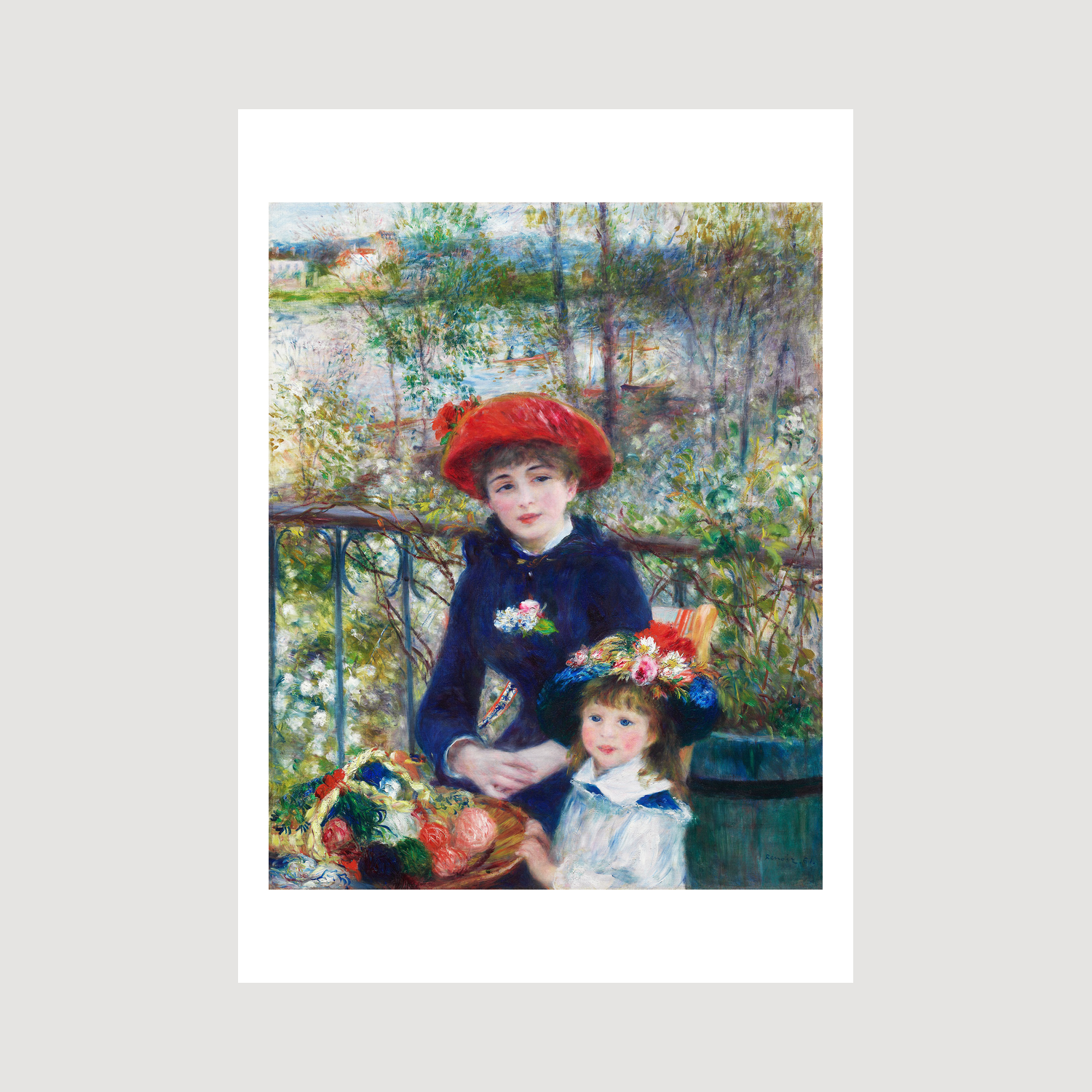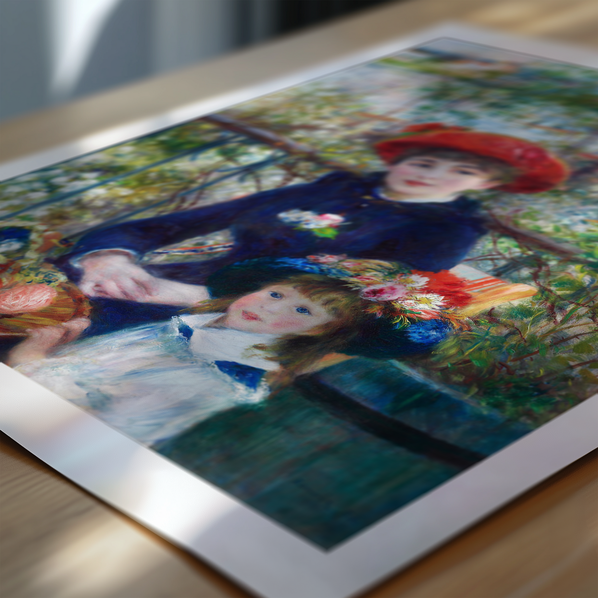 This work emerged during a pivotal period in Renoir's career when he was transitioning from his earlier, more spontaneous Impressionist style to a more structured approach. The painting reflects his growing interest in traditional portraiture while maintaining the luminous quality that characterises his best work. Created during the height of the Impressionist movement, it represents the optimistic spirit of the Parisian middle class during the Belle Époque, when leisure and fashion were celebrated aspects of daily life. The natural poses and informal setting create an intimacy that draws viewers into this captured moment of 19th-century Parisian life.