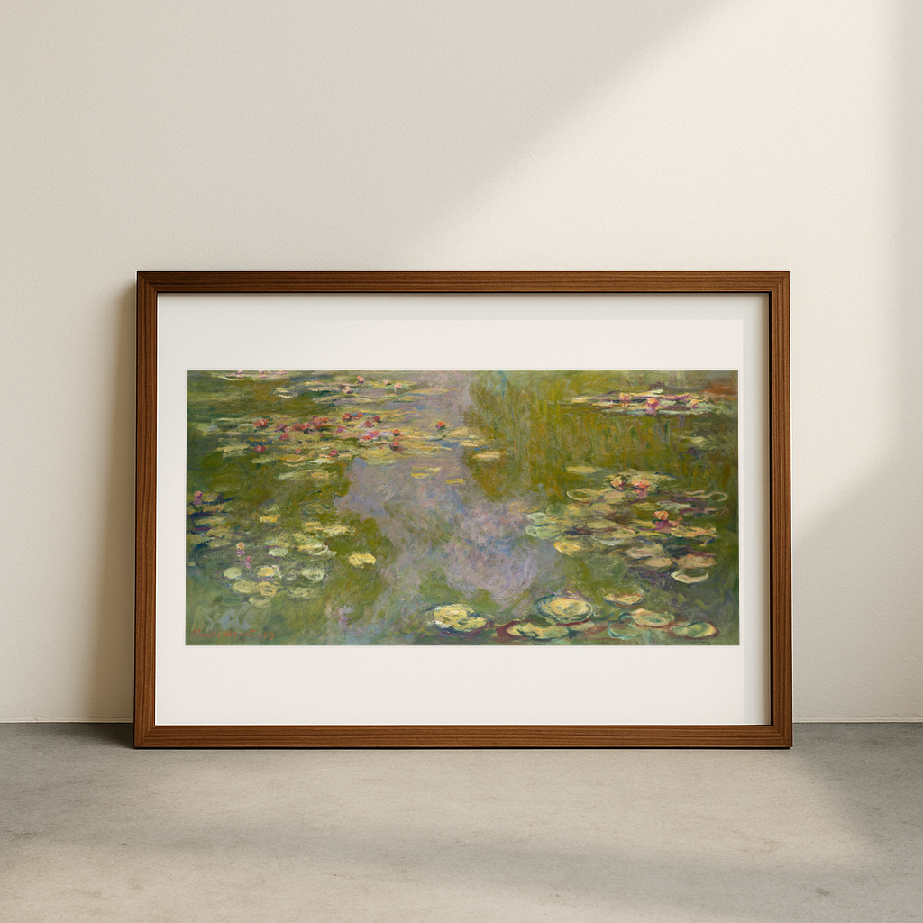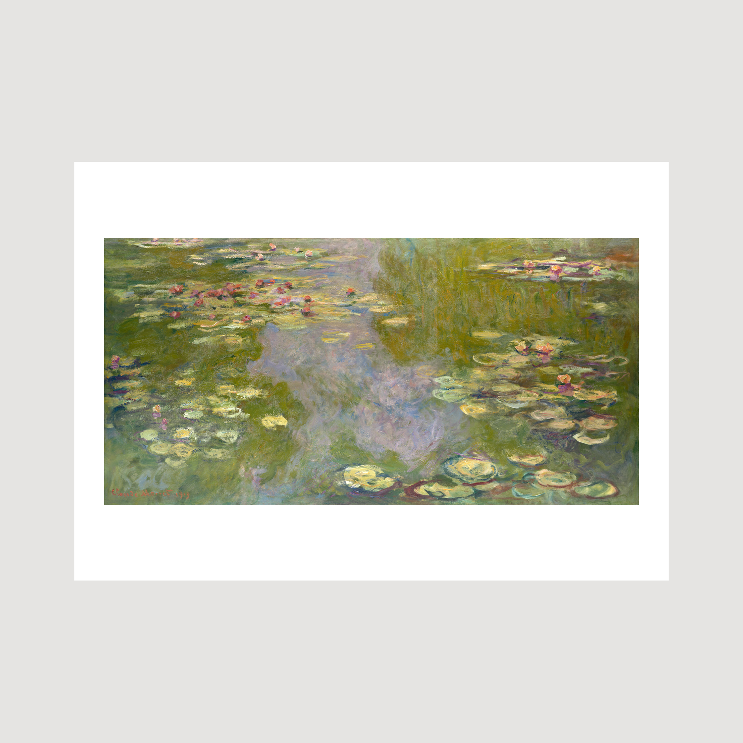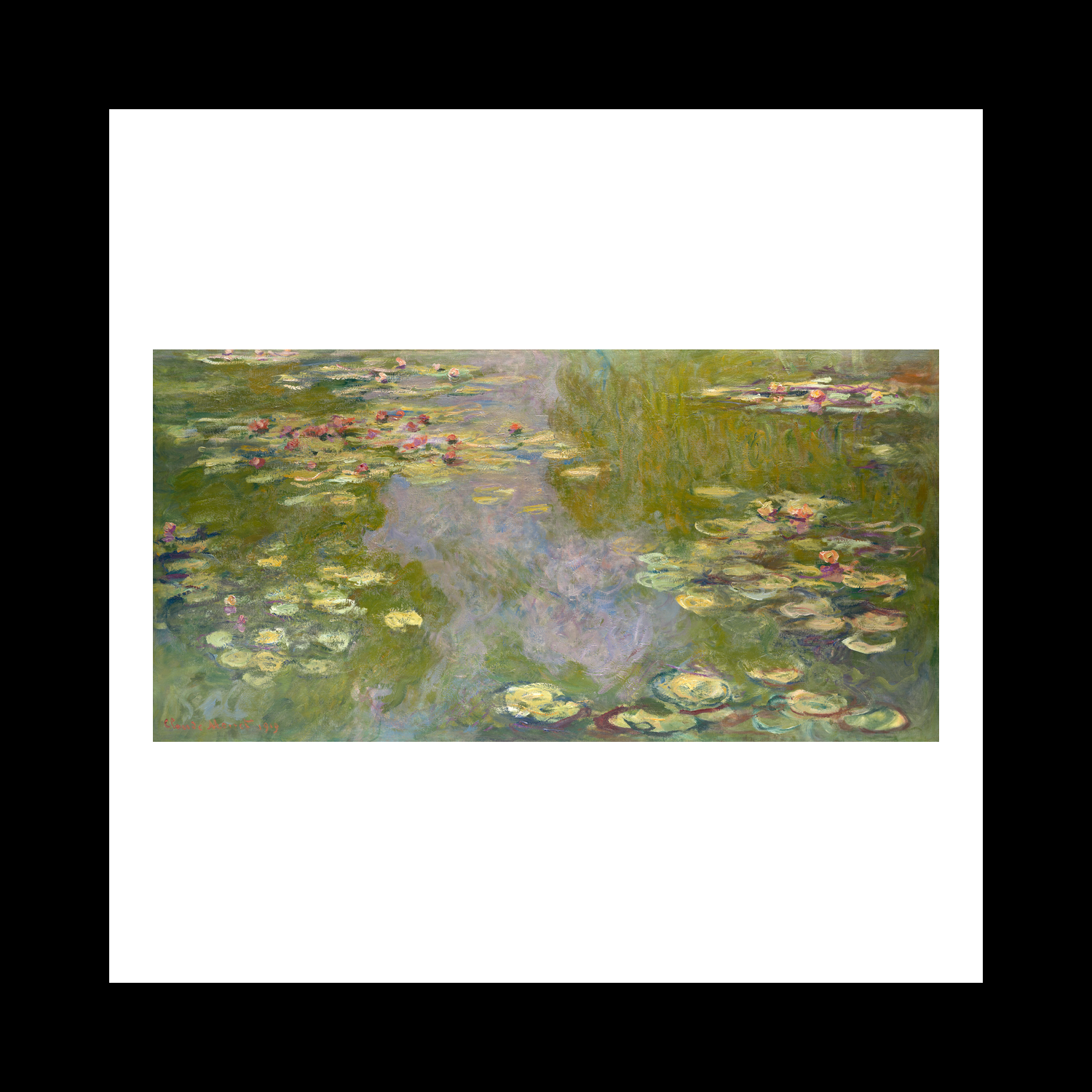 This work belongs to Monet's larger Water Lilies series, painted during his later years when his eyesight was failing due to cataracts. Despite this challenge, or perhaps because of it, these paintings show remarkable innovation in their approach to colour and form. The artist spent countless hours observing his water garden throughout different times of day, seeking to capture the ephemeral qualities of light and atmosphere that became his signature artistic pursuit.